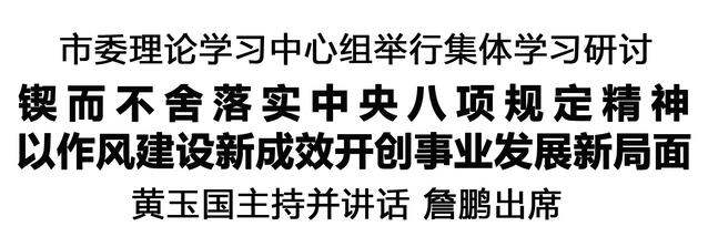 本報(bào)訊(記者 王艷) 1月16日,市委理論學(xué)習(xí)中心組舉行集體學(xué)習(xí)研討,深入學(xué)習(xí)貫徹習(xí)近平新時(shí)代中國特色社會主義思想,全面貫徹落實(shí)黨的二十屆四中全會精神,以打攻堅(jiān)戰(zhàn)、持久戰(zhàn)的決心和恒心,鍥而不舍落實(shí)中央八項(xiàng)規(guī)定精神,推進(jìn)作風(fēng)建設(shè)常態(tài)化長效化,以優(yōu)良作風(fēng)凝心聚力、真抓實(shí)干,為開好民主生活會打牢思想基礎(chǔ)。市委書記黃玉國主持并講話。市長詹鵬出席。