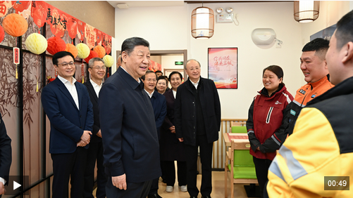 10日上午,習(xí)近平總書(shū)記來(lái)到北京市西城區(qū)新街口街道父母食堂考察。見(jiàn)到在這里休息的3名快遞小哥,習(xí)近平關(guān)切詢問(wèn)他們跑快遞多久了、工作累不累、收入怎么樣、春節(jié)回不回家,為他們付出的辛勞和作出的貢獻(xiàn)點(diǎn)贊。習(xí)近平說(shuō),你們滿足千家萬(wàn)戶需求,城市運(yùn)轉(zhuǎn)離不開(kāi)你們,希望你們都能夠生活得好、工作得好。習(xí)近平強(qiáng)調(diào),各級(jí)黨委和政府一定要關(guān)心新就業(yè)群體,為他們的生活、工作、學(xué)習(xí)提供好服務(wù)。