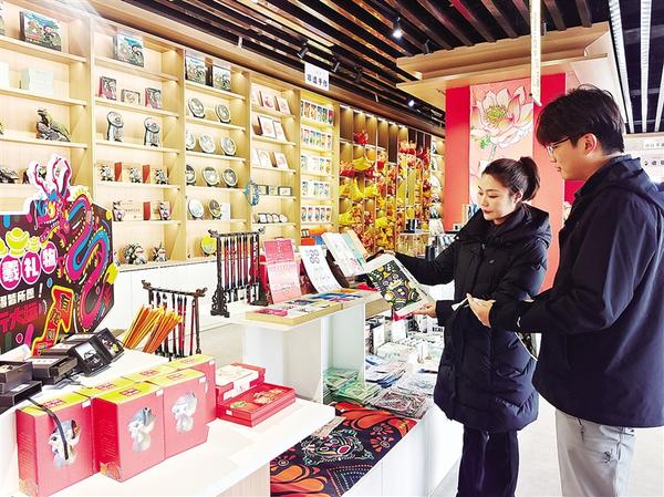 12月18日,在太昊伏羲陵文化旅游區(qū)旅游產(chǎn)品展廳,游客在欣賞非遺手工產(chǎn)品。近年來,太昊伏羲始祖旅游區(qū)運(yùn)營管理有限公司為豐富游客體驗(yàn),聚焦非遺手工、潮玩手辦等主題,開發(fā)了近百個旅游新產(chǎn)品,以滿足游客多元化需求。 ...[詳細(xì)]