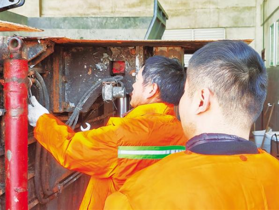 市環(huán)衛(wèi)中心工作人員對垃圾中轉(zhuǎn)站的設(shè)備進行檢修。春節(jié)將至,周口中心城區(qū)生活垃圾產(chǎn)量持續(xù)攀升,垃圾收集轉(zhuǎn)運任務(wù)進入高峰期。