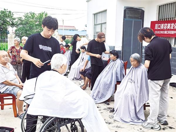 “我還是頭一次享受理發(fā)師上門服務(wù),太高興了?!?月30日下午,沈丘縣卞路口鄉(xiāng)張保元村村民馬桂榮撫摸著剛剪過的頭發(fā),臉上樂開了花。當(dāng)日,張保元村駐村第一書記劉會(huì)見組織周口科技職業(yè)高中的劉宇、李杰等7名志愿者來到張保元村開展義剪活動(dòng)。