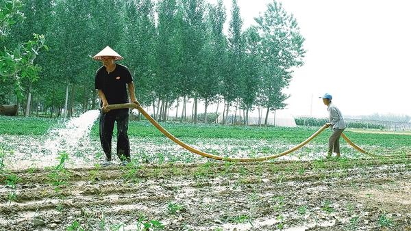 前幾天,受持續(xù)高溫天氣影響,西華一些農(nóng)田出現(xiàn)干旱,為確保秋作物正常生長(zhǎng),農(nóng)戶積極抗旱。圖為農(nóng)戶為辣椒苗補(bǔ)充水分。