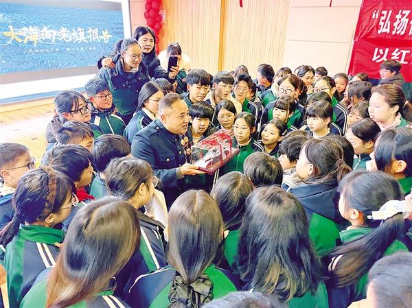 近日,退役軍人張千在商水縣第一高級中學的講臺上為學生講述人民海軍從無到有、由弱變強的壯闊征程。