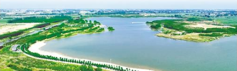 近日,天氣晴好,引黃調(diào)蓄湖波光粼粼,倒映著藍天白云,景致如詩如畫。