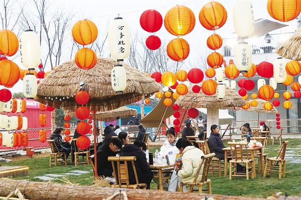 近日,周口首屆永福新春游園會在引黃調(diào)蓄湖畔啟動,吸引不少群眾前去看文藝演出、逛文創(chuàng)集市、嘗傳統(tǒng)小吃。圖一為群眾在露營地休息。圖二為群眾乘船游玩。