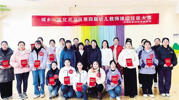 為進(jìn)一步提升幼兒教師的專業(yè)技能,近日,市城鄉(xiāng)一體化示范區(qū)社會(huì)事務(wù)管理局舉辦第四屆幼兒教師彈唱技能大賽,吸引34名幼兒教師參加。圖一為選手展示才藝。圖二為獲獎(jiǎng)選手合影留念。