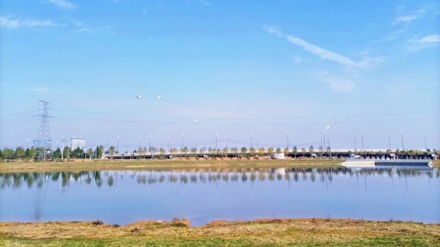 晚秋時(shí)節(jié),周口伏羲湖濕地公園風(fēng)景宜人,舉目望去,波光瀲滟的伏羲湖水面上倒映著藍(lán)天、白云、飛鳥,“秋水共長天一色”的絕美畫卷讓人心醉。