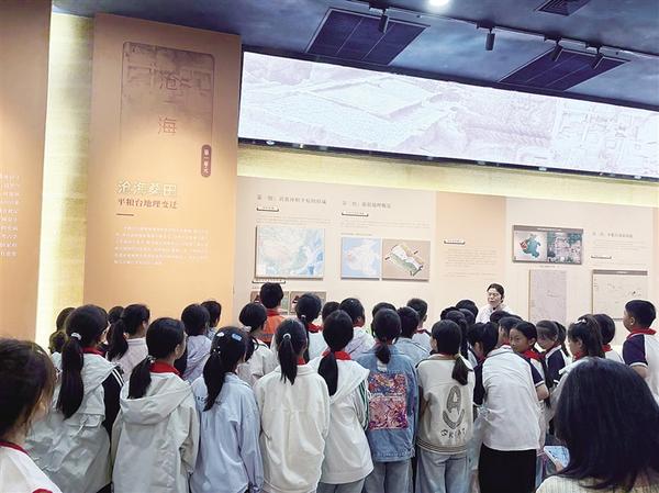 5月23日,學生在平糧臺古城遺址博物館內(nèi)參觀。當日,淮陽一小學師生走進平糧臺古城遺址,走進這片承載著幾千年文明的土地,參加了一場別開生面的“行走的課堂——考古研學”活動。