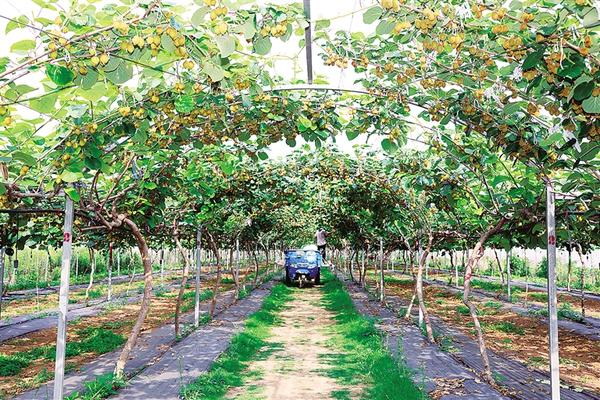 “每枝留果4—5個,間距15厘米,弱枝果、畸形果必須摘除!科學疏果能讓養(yǎng)分集中,糖度提升2度以上,精品果率超80%?!笔⑾牡泥惓强h城郊鄉(xiāng)王樓村,連片獼猴桃架下碩果累累,陽光穿透藤蔓在地面投下斑駁光影,村民羅明同正在按照科技特派員的要求疏果、定果。