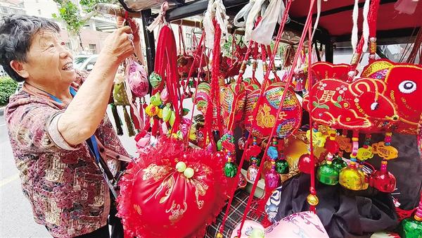 端午臨近,街頭巷尾飄起陣陣藥草清香。記者偶遇一位銀發(fā)奶奶正在街頭售賣手工縫制的香包。放眼望去,小車上的香包琳瑯滿目,造型豐富多樣。