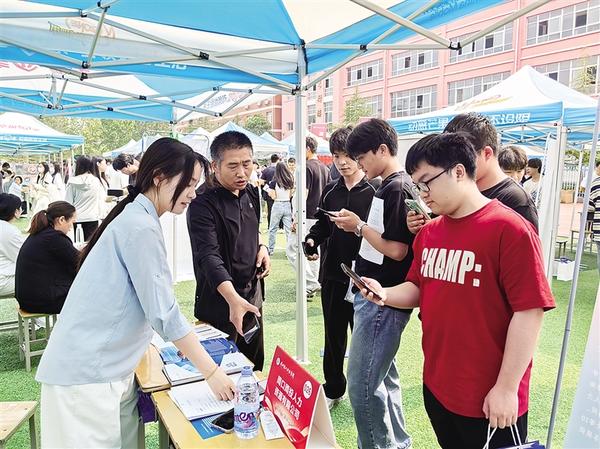 用人單位代表向求職學生介紹企業(yè)情況。5月15日,周口理工職業(yè)學院舉辦2025屆畢業(yè)生“雙選會”。活動中,求職學生積極與用人單位代表溝通交流、提交個人簡歷。用人單位代表耐心解答疑問,介紹公司發(fā)展前景、崗位需求及福利待遇等情況,積極招攬優(yōu)秀人才。