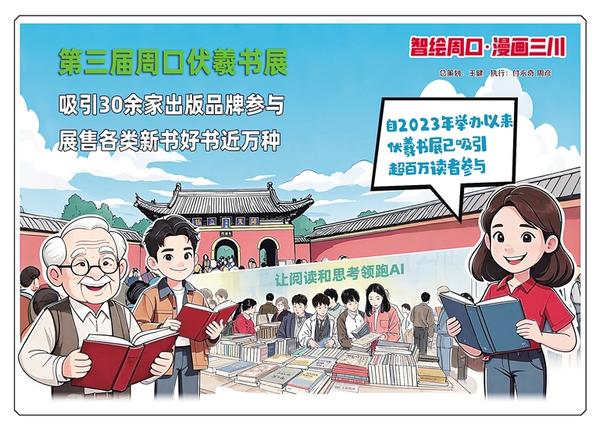 龍湖碧波映羲陵,時(shí)代書(shū)香沁古城。近日,第三屆周口伏羲書(shū)展從淮陽(yáng)移師周口中心城區(qū),繼續(xù)開(kāi)展專場(chǎng)展銷(xiāo)活動(dòng)。本屆書(shū)展以“讓閱讀和思考領(lǐng)跑AI”為主題,聚焦“閱讀價(jià)值升維”,重點(diǎn)展售經(jīng)典人文、認(rèn)知提升、深度思考類圖書(shū)。