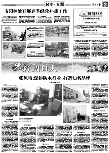 目前,張風(fēng)雷領(lǐng)軍的企業(yè)集團正籌備擴建新的廠房、引進新的先進生產(chǎn)線,向生產(chǎn)高科技含量的新型環(huán)保卷材進軍。他誓言用未來5年或10年的努力,打造出一個由河南人主營的國內(nèi)防水材料知名品牌。