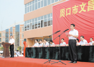 2012年,乘著周口市委“科教興周戰(zhàn)略”的東風(fēng),由周口市委、市政府、市東新區(qū)管委會(huì)傾力打造,投資3億元?jiǎng)?chuàng)辦的周口市文昌中學(xué)應(yīng)運(yùn)而生。市委書記徐光親筆為該校題下“礪學(xué)弘文、昌達(dá)天下”的校訓(xùn)。