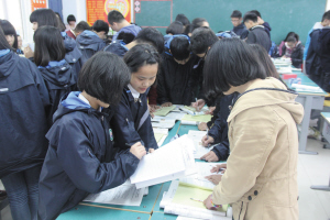 該校將課堂名字定為“求真大課堂”,以“真”字作為學(xué)校一切教育教學(xué)和管理的衡量標(biāo)準(zhǔn)。朱貴華說,求真就是要真教、真學(xué)、真嚴(yán)、真愛、真實(shí)、真會(huì)。為提高課堂教學(xué)效果,該校總結(jié)出一套獨(dú)特的課堂教學(xué)方法——“七音和鳴”。分管教學(xué)工作的副校長徐其運(yùn)用“1234567”,即哆來咪發(fā)唆拉西”來詮釋“七音和鳴”法。“1”就是一個(gè)學(xué)習(xí)目標(biāo);“2”就是提前兩分鐘進(jìn)班,布置2個(gè)任務(wù)(出示目標(biāo)、檢查學(xué)情);“3”就是準(zhǔn)備3個(gè)本子,即學(xué)情檢效本、跟蹤本、糾錯(cuò)本;“4”是4個(gè)維度考評,即高速度、準(zhǔn)確度、干凈度、參與度;“5”是5個(gè)跟蹤,即節(jié)跟蹤、日跟蹤、周跟蹤、月跟蹤、學(xué)期跟蹤,堅(jiān)持“抓緊跟蹤不放松、我在文昌必成功”的教育信念;“6”是6個(gè)環(huán)節(jié),即激情導(dǎo)入、自研自探、合作探究、展示質(zhì)疑、師生點(diǎn)評、當(dāng)堂檢測;“7”是7個(gè)評價(jià),即教師的教案、學(xué)生的學(xué)案、練案、觀課記錄的每周業(yè)務(wù)評價(jià)及對學(xué)生的即時(shí)性、激勵(lì)性、長效性評價(jià)。