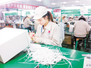 昨日,在三星手機(jī)耳機(jī)供應(yīng)商日立亞電子淮陽(yáng)有限公司生產(chǎn)車間,工人們正在生產(chǎn)線上忙碌著?;搓?yáng)縣近年來(lái)積極實(shí)施“工業(yè)強(qiáng)縣、旅游突破、城鄉(xiāng)統(tǒng)籌、四化同步”發(fā)展戰(zhàn)略,不斷調(diào)整工業(yè)產(chǎn)業(yè)結(jié)構(gòu),增加企業(yè)科技含量,以提升產(chǎn)品質(zhì)量和市場(chǎng)競(jìng)爭(zhēng)力,促進(jìn)經(jīng)濟(jì)轉(zhuǎn)型升級(jí)。(記者 侯俊豫 攝)