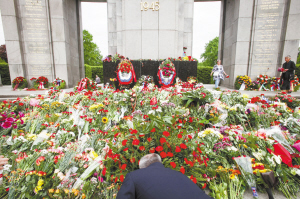 ④5月9日,一名男子在德國柏林一處蘇軍烈士墓獻花。