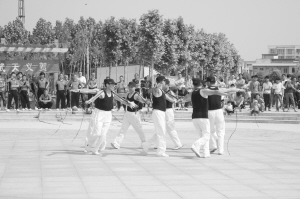 為進一步推動全民健身活動的深入開展,項城市啟動了“全民健身月”活動,讓市民積極投身到全民健身行列中,努力使體育鍛煉經(jīng)?;€人健身生活化。圖為5月18日項城市鞭陀協(xié)會的會員正在進行鞭陀健身展演。