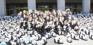 熊貓軍團(tuán)“占領(lǐng)”首爾      5月23日,在韓國(guó)首爾,展覽工作人員與紙制大熊貓合影。當(dāng)日,1600只紙制大熊貓?jiān)谖挥谑谞柺兄行牡氖雷谖幕瘯?huì)館前亮相?!凹堉拼笮茇埵澜缰谩被顒?dòng)創(chuàng)辦于2008年,由世界自然基金會(huì)和法國(guó)藝術(shù)家保羅·格蘭金聯(lián)合發(fā)起,以回收的廢紙和雞蛋殼為材料,設(shè)計(jì)制作1600只形態(tài)各異、表情豐富的大熊貓,目的是推廣保護(hù)大熊貓和民眾的環(huán)保意識(shí)。新華社發(fā)