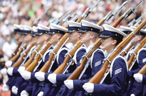 5月25日,在美國(guó)華盛頓憲法大道,儀仗隊(duì)士兵參加陣亡將士紀(jì)念日游行。