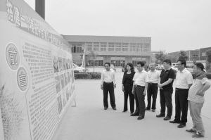 縣領(lǐng)導(dǎo)在雷爍光電廠區(qū)參觀首屆職工技能運(yùn)動(dòng)會(huì)展板。