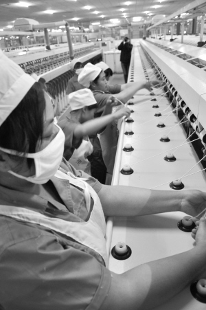 紡織工人們正在緊張比賽中。