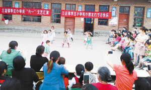 左圖 兒童節(jié)前夕,項(xiàng)城市積極組織小學(xué)、幼兒園開展慶“六一”活動(dòng),讓小朋友享受更多的歡樂和溫暖。圖為三店鎮(zhèn)李莊小學(xué)的孩子正在表演節(jié)目。(張永久 攝)