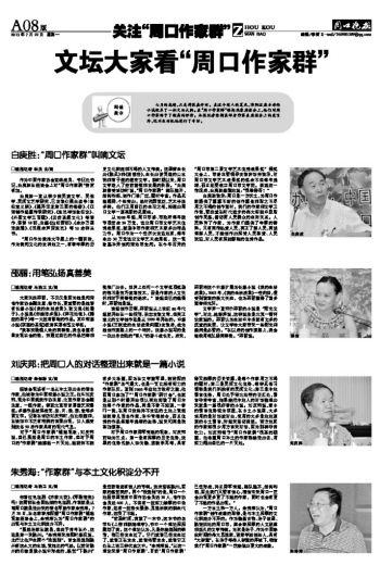 對于“周口作家群”崛起現(xiàn)象,劉慶邦說,自己雖然是周口的本土作家,但對于周口的“作家群”能撐起一片天地,起初并不抱有多大希望,因為在文學(xué)豫軍里,數(shù)南陽的“作家群”名氣最大,也是一支比較有實力的作家隊伍。直到2005年應(yīng)地方政府之邀,他回周口參加了“‘周口作家群’研討會”,也就是從那個時候開始很認(rèn)真地閱讀了周口本地每個作家的作品,真是不看不知道,一看嚇一跳,在周口這塊并不發(fā)達的土地上竟然活躍著幾百名作家,老中青相結(jié)合,而且優(yōu)秀的作品呈逐年遞增的態(tài)勢,說來可真是欣喜加驚喜。