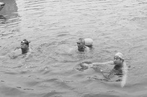 伸伸腰,扭扭腿……下水前,大家都要活動筋骨,避免發(fā)生意外。根據(jù)分組,大家按照次序來到河邊,聽到口令后,一個個魚躍河中。14歲的張毅來自許昌代表隊,賽后他激動地對記者說:“我很久之前就開始接觸游泳了,但是冬泳剛剛練習(xí)了3年,參加這樣的比賽很開心。”記者采訪發(fā)現(xiàn),冬泳愛好者比賽結(jié)束后很少關(guān)心自己的成績,他們說得最多的是“爽”。一位冬泳愛好者告訴記者,比賽成績不重要,重要的是這項運動能培養(yǎng)人的意志力以及使人保持開朗樂觀的生活態(tài)度,這才是他所追求的。