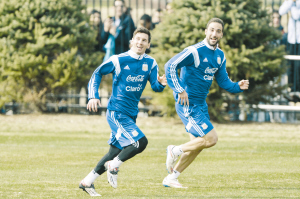 當(dāng)?shù)貢r(shí)間3月24日,阿根廷隊(duì)球員梅西(左)與隊(duì)友在訓(xùn)練中。當(dāng)日,阿根廷隊(duì)在美國(guó)華盛頓訓(xùn)練,備戰(zhàn)28日與南非隊(duì)的熱身賽。新華社發(fā)