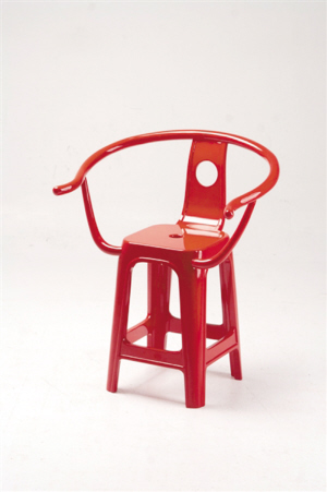 臺灣的夜市和大排檔往往讓許多去臺灣旅行的人流連忘返,大排檔里許多簡易的塑料凳子也讓人印象深刻,如果將這款凳子和圈椅結合起來會是什么樣子呢?設計師吳孝儒的這款圈凳,將幾千年前的圈椅和如今的速食文化融合,從材質、線條設計融入了中西方跨越文化,讓人似乎有一邊看著古裝劇一邊吃著大排檔的感覺。