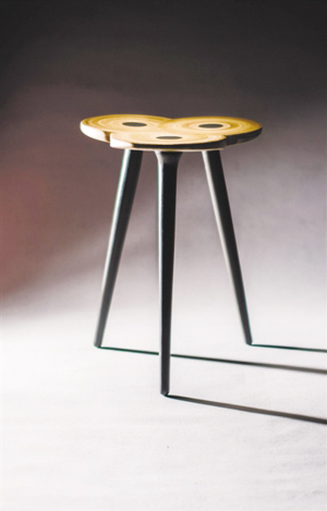 遠看這個小凳并不是竹子的第一印象,但細細觀察才發(fā)現(xiàn)竹子被改變了一種“狀態(tài)”重新呈現(xiàn)。竹子是最“東方”的材料之一,許多中國設計師都喜歡用竹子的形、意來展開設計,據(jù)設計師林桓民介紹,這個竹凳是將竹子先“劈”成很薄很薄的片狀物,然后一圈一圈纏繞而成,當竹子的形態(tài)被改變后,和木頭支撐的完美結合也就造就了這把“同心竹凳”。