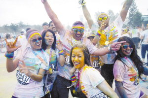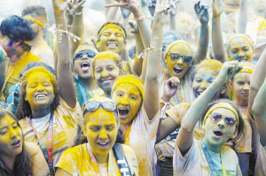 當地時間6月13日,在美國洛杉磯,約萬名跑步愛好者在洛杉磯道奇球場外參加“彩色跑”活動?!安噬堋笔且豁棅蕵放懿巾椖?,全程為5公里,每公里設置一個彩色站,當參與者跑至彩色站時,由志愿者向參與者拋灑彩色粉末。與傳統(tǒng)跑步競速相比,“彩色跑”活動雖然沒有贏家或獎品,但強調“參與、娛樂和色彩”的重要性。